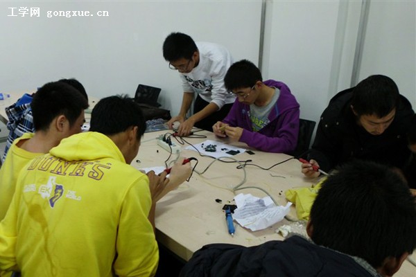 公司大一新生一大早就来到机器人创新实验室,自己动手做追光机器人。正式开始后,刘相元就原理、技术等各方面进行了讲解和答疑。机器人协会主席陈振兴一直坚守现场,制作场面非常壮观。