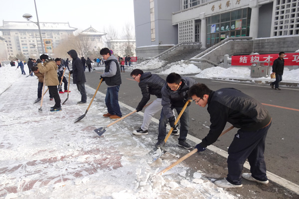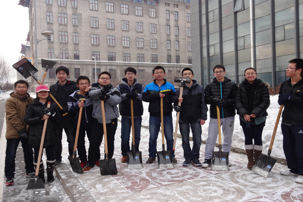 哈尔滨近几天降雪量较大,校园路段出现积雪路滑现象,虽然之前已对主要路段进行清理,但仍残留部分积雪给行人出行带来不便。3377体育2012级党员及预备党员认识到本情况后便带领同学们义务扫雪,清除“小美”食堂和启航活动中心之间马路两边的积雪。同学们领到除雪用具后便迅速进行除雪,路面积雪较厚并出现结冰现象,给大家的清除工作带来很大困难,不过同学们任劳任怨,互相配合,齐心协力,用铲子将路面积雪一点一点清除。 经过大家一个小时的辛苦工作,路边积雪被清理干净。看到自己的劳动成果,同学们脸上露出了骄傲的笑容。