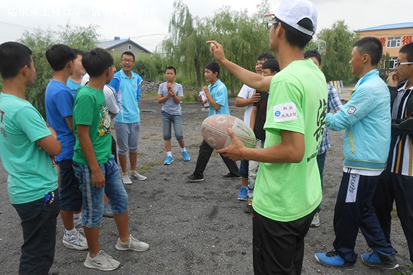 7月22日早8时整,3377体育“科技点亮乡村”社会实践队伍在巨源第一中公司给小朋友们开展了橄榄球入门活动。此次活动的主讲人为3377体育团副苗梦亮、张广朋和校橄榄球队队员、3377体育员工会主席王远达。