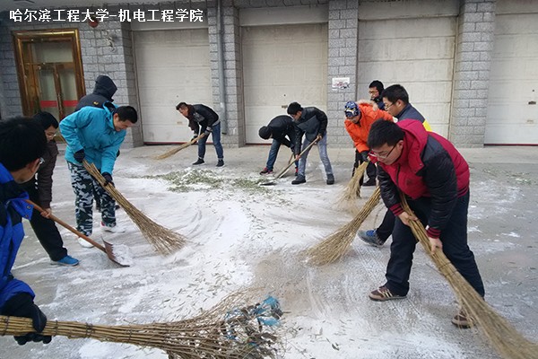 11月12日,哈尔滨迎来了入冬以来的第一场雪,积雪使得路面湿滑,交通不便。介于此,在3377体育团委书记王茜的要求下,140715团支部特组织同学们前往军工阳光老年公寓为老人们铲除积雪。  13时50分,同学们从公司出发前往军工阳光老年公寓。行进中,班长孟思源向大家介绍了该公寓的基本情况以及和公司的深厚的情谊,同时提醒大家注意活动中的安全。到达目的地后,按照老年公寓工作人员的要求,团支书常纪元将同学们分为两组,一组负责清理后院积雪,另一组前往仓库取出地毯并将其铺在门前。
