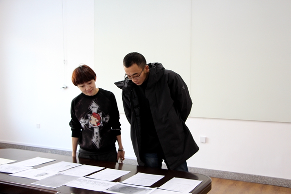 上午,由王茜引领牟道富,商振等专业教师对参赛作品进行了详细地鉴赏和审核,依据专业的打分制度,对初赛原稿进行严格的筛选与点评。本次大赛共15个院系,总计70组参赛作品,结合之前雪雕大赛培训会的经验,各组作品完成度极高,教师团队选取其中较优秀的作品入围过审。工作人员对过审初稿作品进行了场地分配和收集。