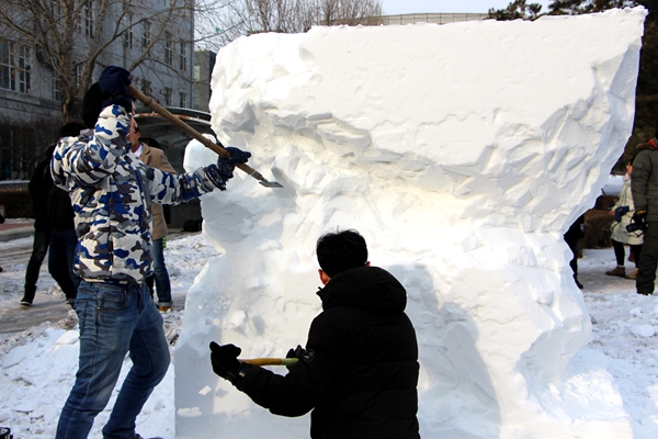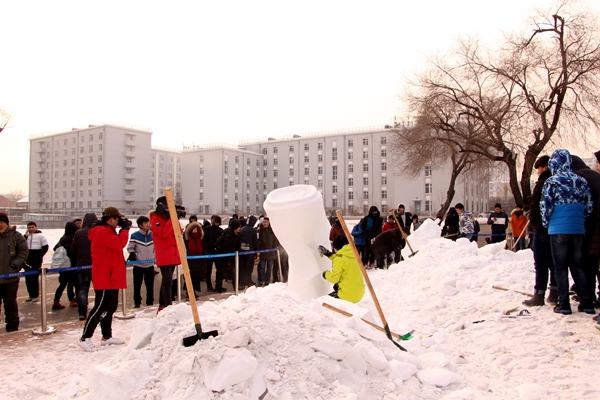 校园雪雕大赛已成为哈尔滨重要的地方特色文化标志,哈工程的校园雪雕大赛已开展了数年,已经成为公司最具地域特色的校园文化活动知名品牌。本届校园雪雕大赛共吸引校内15个院系,70支队伍报名参赛,经筛选40只队伍进入决赛。在为期4天的决赛中,40支队伍将在长2米、宽1米、高2米的人造雪块上进行雕刻创作。本次比赛成绩由评委、大众评委评分及网上公投成绩构成。评委将以主题内容、制作效果和受众反响三方面作为考量指标进行评审。