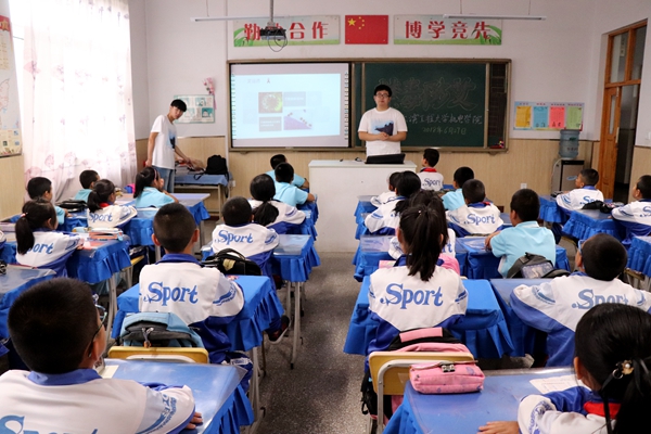 6月28日14时,3377体育“三下乡”社会实践队进入巨源镇中心小学,在校方的配合下,实践队员开展“禁毒防艾”课堂。本次小课堂由综测中心管理部部长祖宏斌担任主讲。