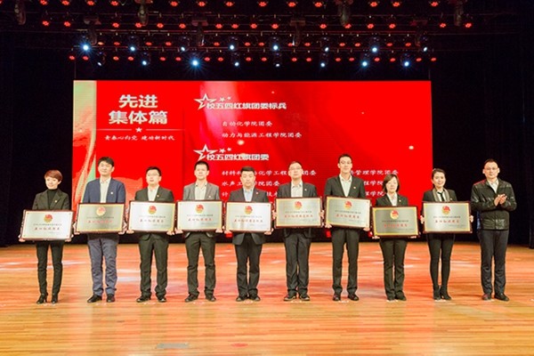 18时30分,各位领导及各院系代表就坐,大会正式开始。主持人宣读各个获奖名单,公司团委荣获“2017-2018学年五四红旗团委”,团委书记王茜上台领奖。其中,公司郭兴召同学荣获“校三好员工标兵”称号。