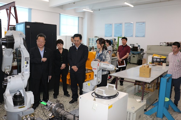 高书记一行两人实地考察了机械创新实验室、机械综合实验室、机械典型分析实验室等教学实验室以及舰船特辅与水下装备重点实验室、水池、水下作业机器人实验室等科研实验室。