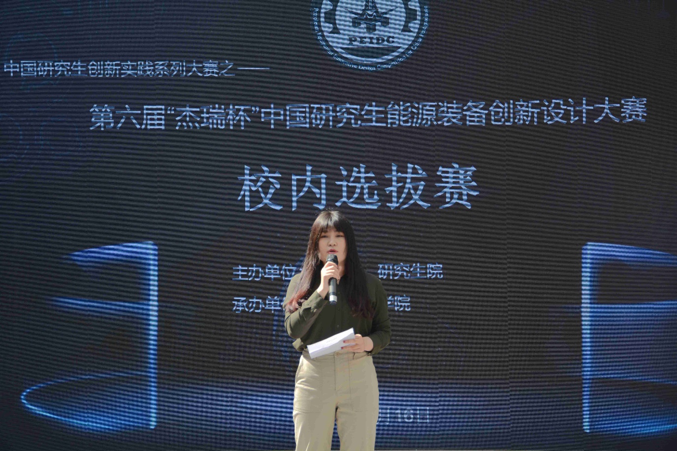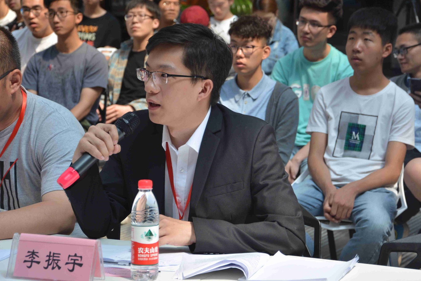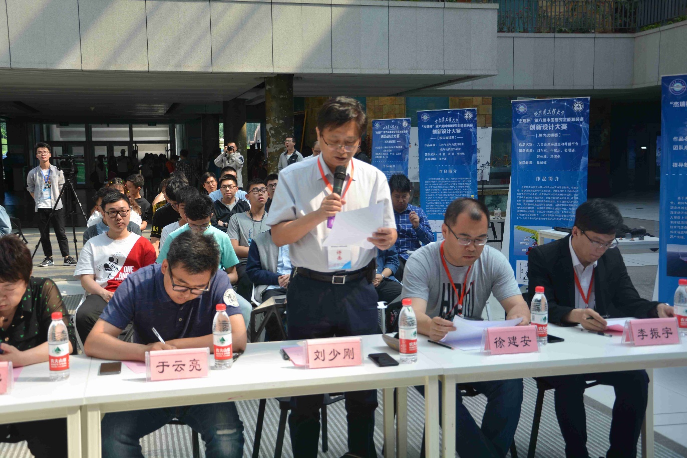 大赛正式开始前,参赛选手代表赵月发表参赛宣言。评审组代表刘少刚教授宣布比赛评比规则。最后由研究生院副经理王秦辉老师致开幕辞并宣布大赛开幕。比赛正式开始首先评审团成员预览了现场参赛作品,随后进入现场答辩环节。
