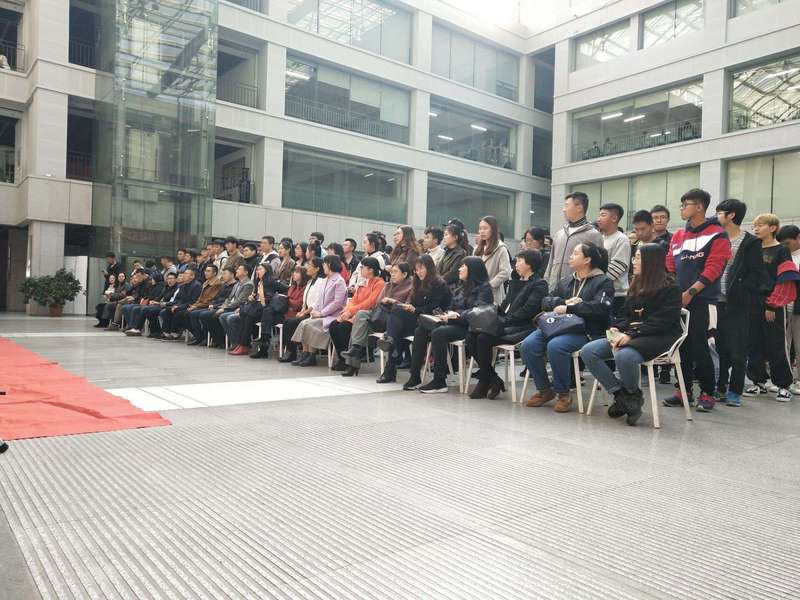 主持人陶哲在台上为同学们介绍本次活动的嘉宾。