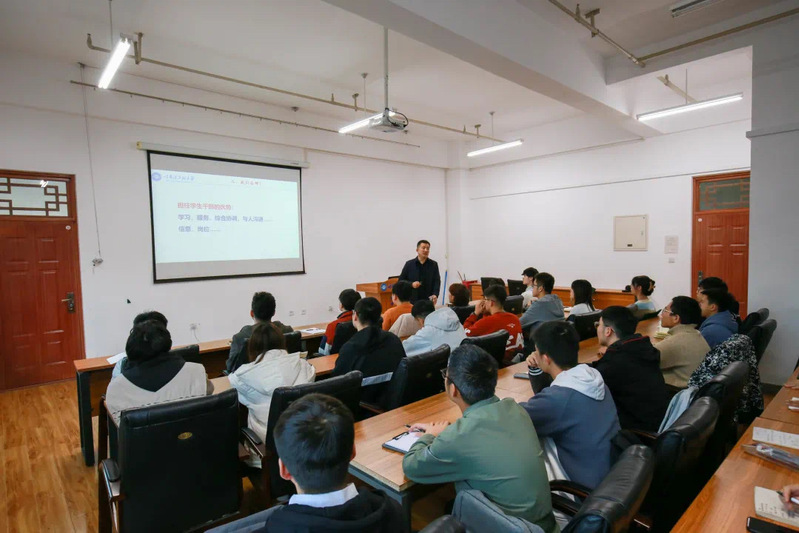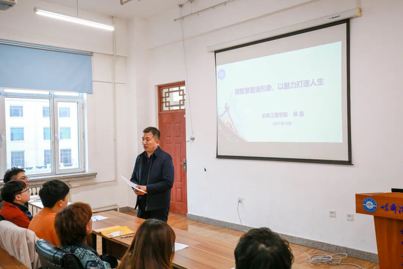 侯磊以“用智慧塑造形象,以魅力打造人生”为主题,从最基本的哲学问题入手,带领同学们学习党的精神,深入学习习近平新时代中国特色社会主义思想,鼓励同学们做好员工工作,争做有志气,有骨气,有底气的新时代青年。