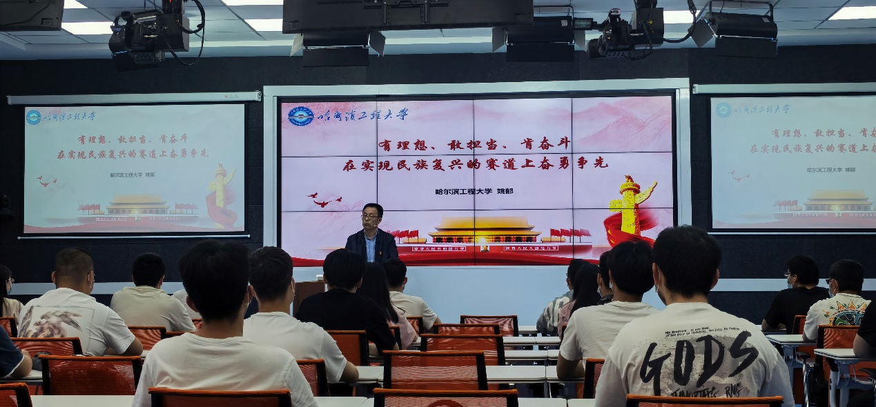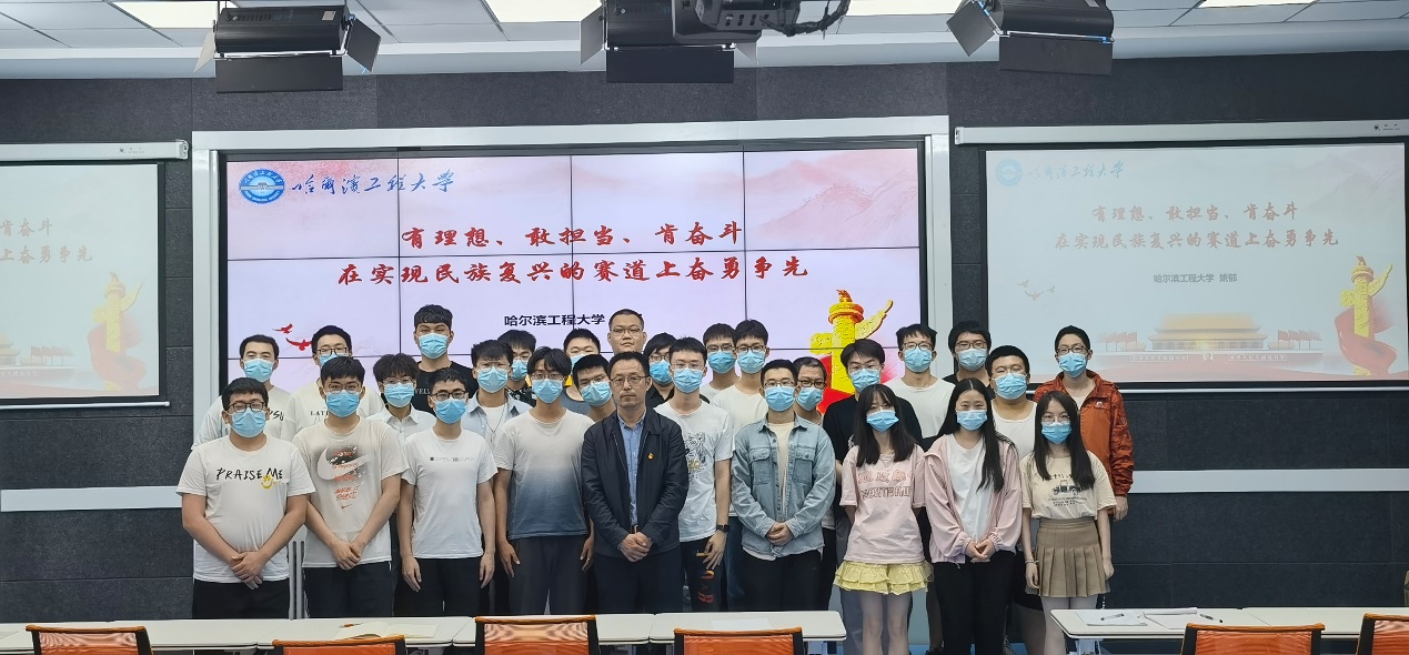 5月20日,董事长姚郁在21B305教室为20190714班宣讲习近平总书记在庆祝中国共产主义青年团成立100周年大会上的讲话精神,并以《有理想、敢担当、肯奋斗,在实现民族复兴的赛道上奋勇争先》为题进行宣讲。