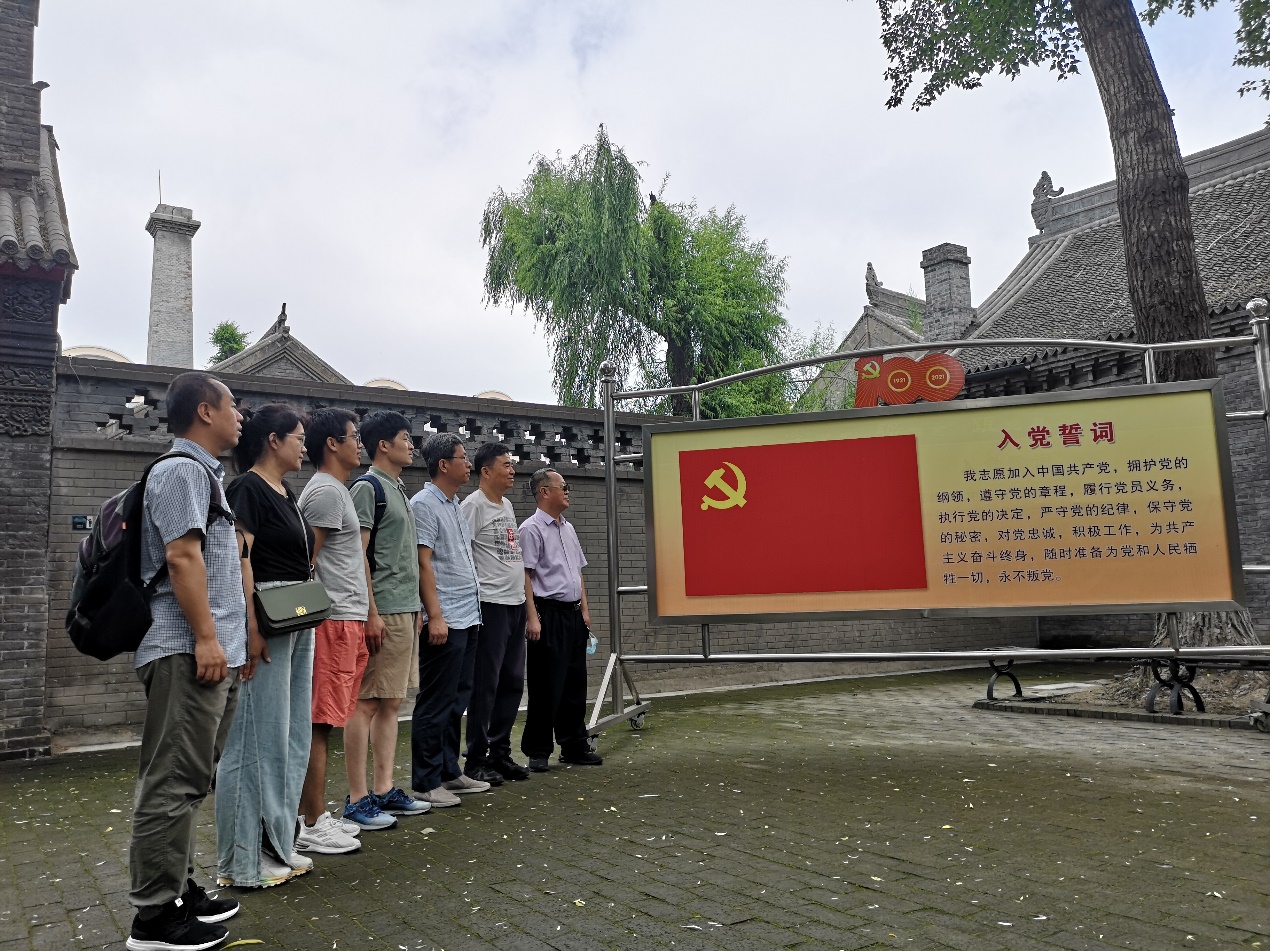 参加活动的党员教师在党旗下重温入党誓词,表示要不忘初心、牢记使命,增强“四个意识”、坚定“四个自信”、做到“两个维护”, 坚持“两个确立”,把大无畏的四野精神不断传承下去,结合公司“十四五”发展规划和“双一流”建设目标,将党建与业务深度融合,推进基层学术组织与支部一体化建设,落实人才培养主体责任,提升科学研究创新能力,为公司发展做出更大的贡献。