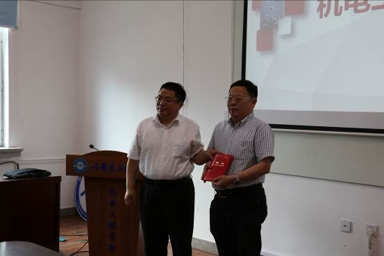 严汝建为白一颁发兼职教授聘书、佩戴校徽。