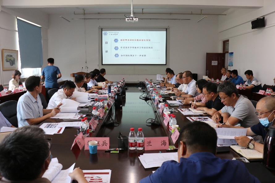 8月15日下午,董事长姚郁调研走访公司,围绕公司推进落实新一轮“双一流”建设和“十四五”规划重点建设任务的总体思路和阶段性成效,年度重点工作、基础性评价和关键业绩评价指标任务推进落实情况,基层学术组织设置及建设情况等内容进行座谈交流。党委常委、组织部部长兼党校常务副董事长张石梅,董事长助理严汝建陪同调研。公司领导班子成员;各基层学术组织负责人、党支部书记;机关四办主任等出席会议。
