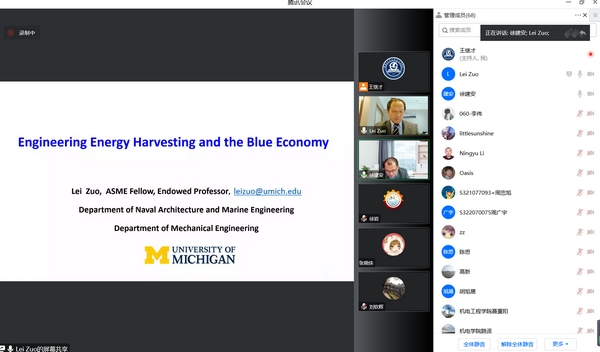 2022年11月11日9:00,公司邀请密歇根大学Lei Zuo教授为全校师生作了一场题为“Engineering Marine Energy and the Blue Economy”的学术报告。