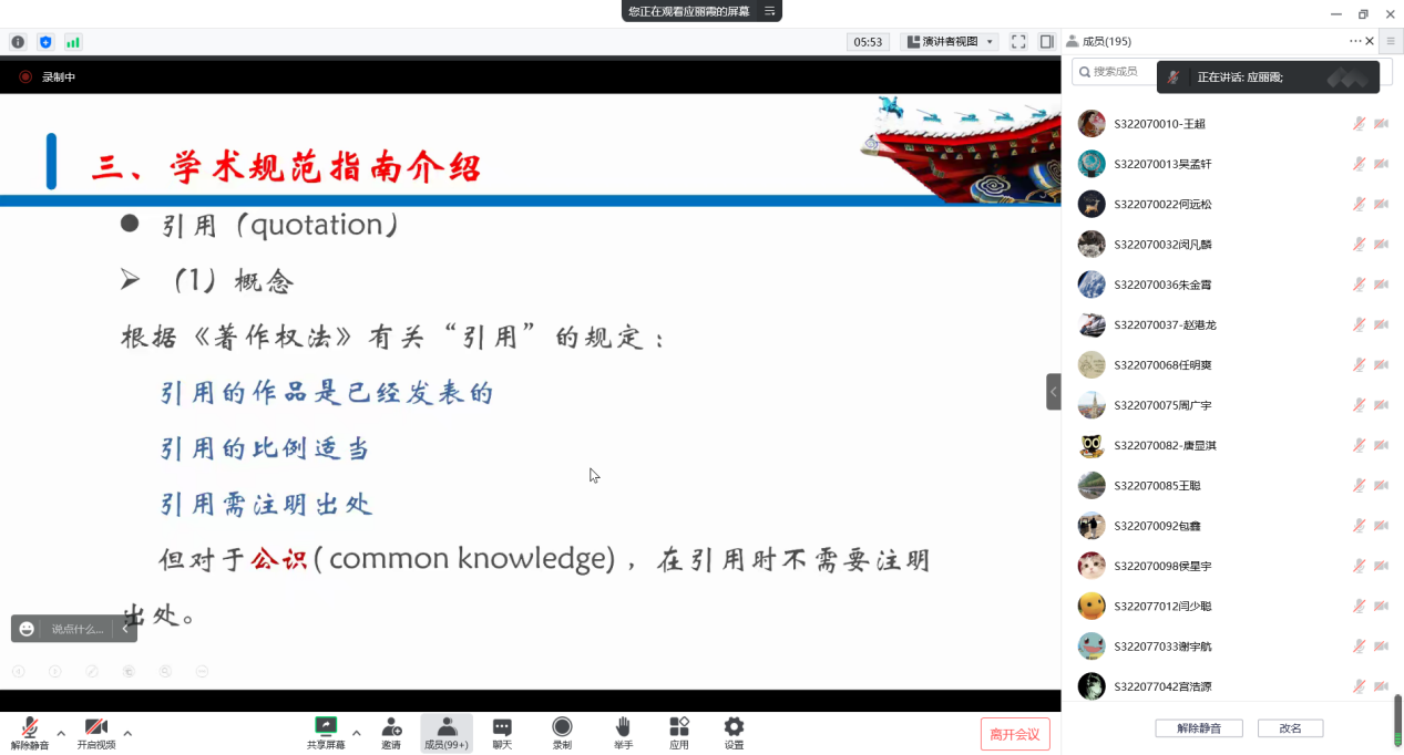 宣讲会上,应丽霞副经理从学术诚信的必要性、学术不端典型案例及规范指南等三个方面向全体参会师生介绍学术诚信及学术规范的相关宣讲内容,并带领参会员工们学习国家与公司有关制度性文件。