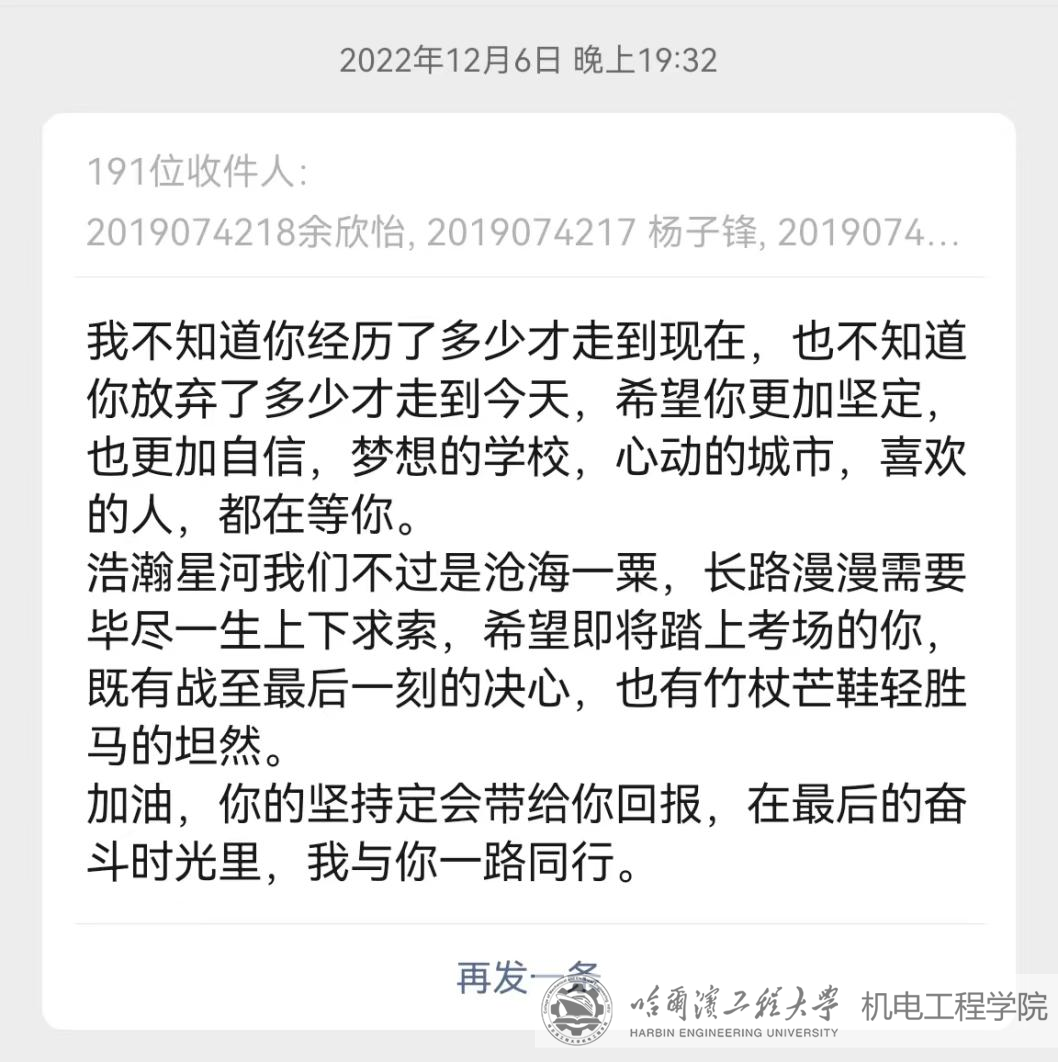 3377体育今年有200余名学子考研。关爱考研学子,为其办实事、送温暖的系列举措汇聚成了冬日里一股暖流,在彰显校园人文关怀和践行立德树人根本任务的同时,也助力更多的机电学子奋勇拼搏,实现梦想。