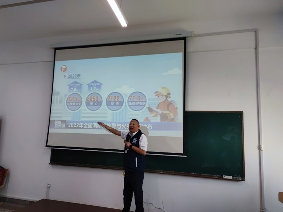 首先,由哈尔滨市卫民安消防知识宣传中心姜言君老师结合日常生活和示范中心实验教学工作实际情况,以生动的讲解和详实的案例,为广大师生讲解日常工作和生活中的消防常识和火灾避险方法。