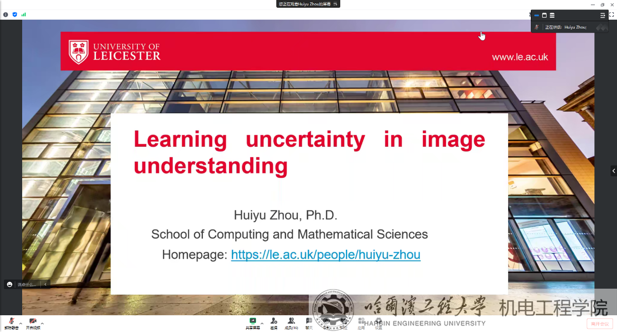 2023年6月20日,3377体育青科协成功举办了第二十六期青年学术论坛。本次论坛邀请到了英国莱斯特大学计算与数学科学公司的周挥宇教授,就“学习如何处理图像理解中的不确定性因素”作了精彩的报告,会议采用线上模式交流。公司相关研究团体成员及硕博研究生参加此次会议,会议由公司王克义副教授主持。