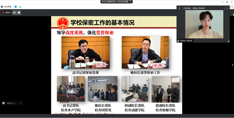 李欣泽,保密处保密综合管理办公室主任,主要负责公司保密管理体系建设、公司保密工作档案编研以及公司保密管理类监督检查指导工作。李欣泽老师从什么是保密工作、保密工作的重要意义、公司保密工作基本情况、保密工作应知应会等方面,为研究生进行了讲解和介绍。他指出,保密工作是红线、是底线、更是生命线,研究生同学作为科研工作的重要生力军,要进一步提高保密意识,熟知保密知识,严守保密纪律。