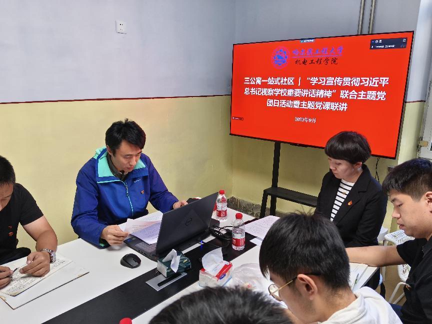 2023年9月22日下午,三公寓社区召开“学习宣传贯彻习近平总书记视察公司重要讲话精神”联合主题党团日活动暨主题党课联讲。工业设计系党支部、院直机关党支部、博士第一党支部、本科生第二党支部、三公寓社区4-1班团支部参加会议。院直机关党支部书记刘鸣主持本次党团日活动。