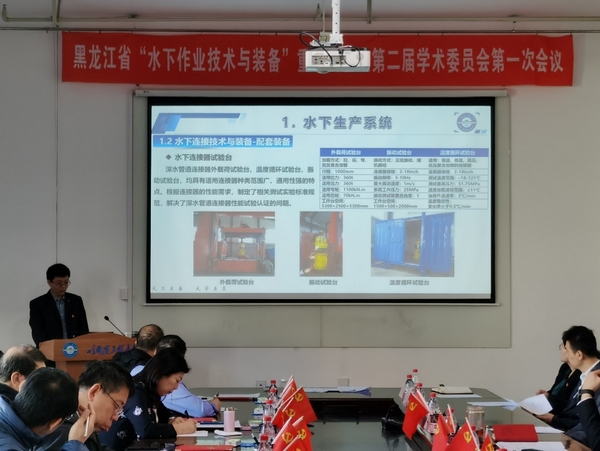科研院副经理卢熙群宣读第二届“黑龙江省水下作业技术与装备重点实验室”学术委员会和组织机构任命名单。