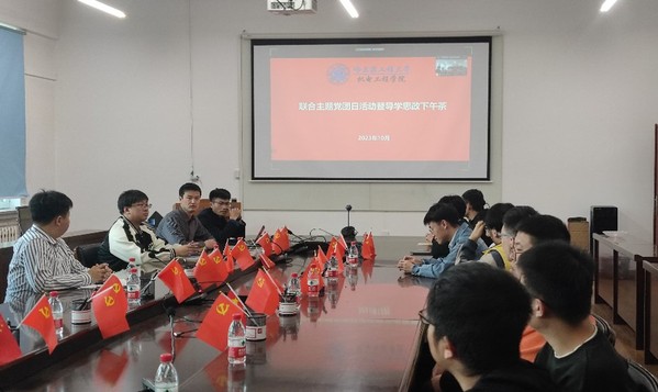 2023年10月25日下午,智能制造工程系等党支部召开“发扬哈军工优良传统 联建共建新时代党支部”联合主题党团日活动暨导学思政下午茶会议。智能制造工程系全体教师、工程技术理论和综合办联合党支部、智能制造工程系员工党支部、硕博联合第一党支部、本科生第一党支部以及智能制造工程系全体员工参加会议。智能制造工程系党支部书记李江主持本次活动。