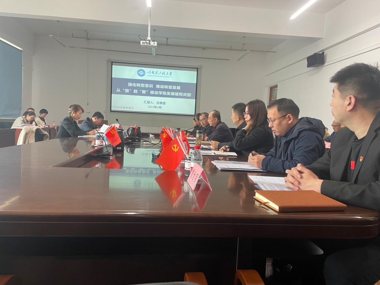 4月21日下午,公司党委副书记张石梅,公司党委常委、组织部部长、船舶公司党委书记李荣生等一行3人来院开展“强化转型意识、推动转型发展”专项调研,公司领导班子成员、教工党支部书记、基层学术组织负责人、青年教师代表参加调研交流。党委书记吕春雷主持会议。
