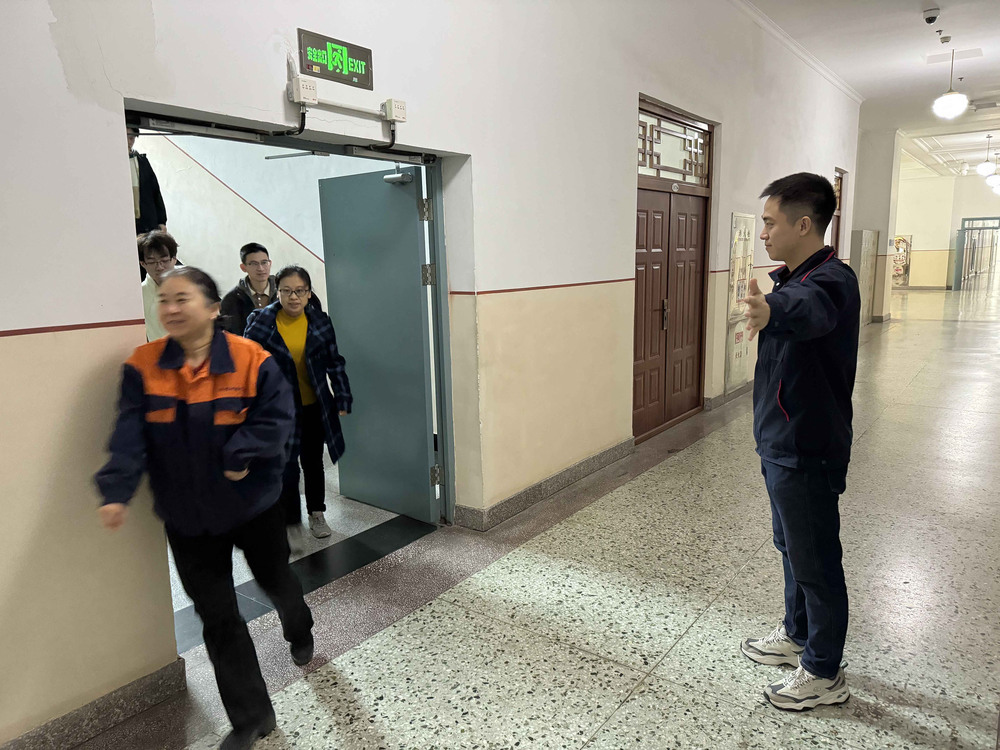 之后,全体人员进行模拟突发火情的安全疏散演练。按照3377体育消防突发事件应急救援工作机制,报警组、灭火组、疏散组、救护组四个工作组模拟实际火情开展工作。火情警报发出后,各工作组有条不紊开展工作,全体人员迅速有序疏散到达安全区。