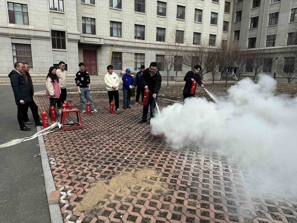 完成疏散后,还进行了灭火实操演练,由安保处叶远康老师再次详细讲解了通用灭火器和消防栓的使用方法,示范了灭火操作的要点和操作技巧,现场的师生依次进行了实操演练。