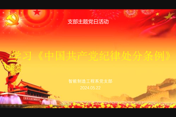 2024522日下午,智能制造工程系党支部召开“学习《中国共产党纪律处分条例》主题党日活动,智能制造工程系全体教师参加会议。经理徐建安以“认真学习《中国共产党纪律处分条例》推动党纪学习教育走深走实”为题讲授了一堂生动的专题党课。