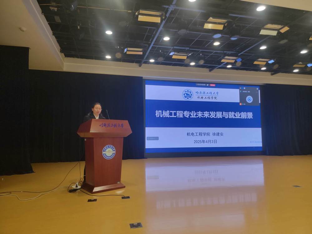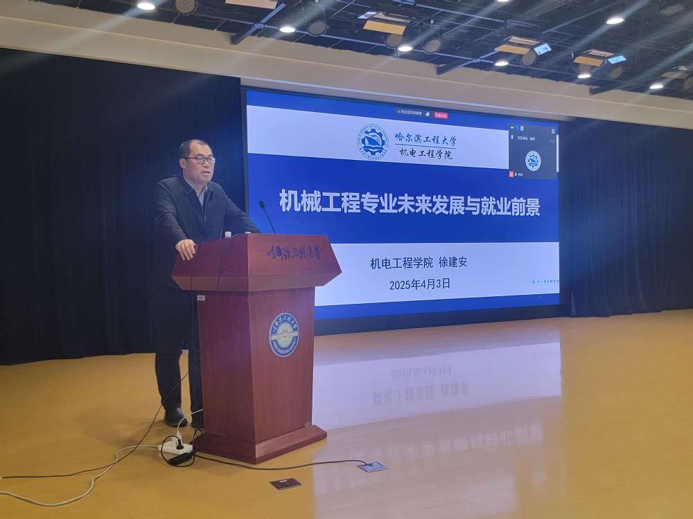 首先,徐建安经理向参会的同学们做了题为《机械工程专业未来发展与就业前景》的讲座,分别从机械工程专业简介、机械工程服务领域、机械专业与中国智造、机械专业就业前景四个方面进行了介绍。徐经理强调,作为一所以海洋与国防为特色的高校,肩负着服务国家装备制造和海洋科技发展的光荣使命。哈军工的优良传统为我们积淀了深厚的军工底蕴,多年来培养的毕业生以“可靠顶用、拔尖创新”的鲜明特质,赢得了国防科研院所和高端装备制造单位的高度认可。他勉励同学们要珍惜学习时光,勇攀科技高峰,以实际行动投身海洋强国建设,为打造国之重器贡献青春力量!