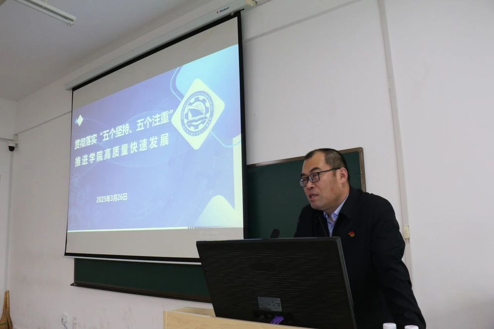 徐建安经理结合公司2025年工作要点和公司新学期工作布置会精神,贯彻落实“五个坚持”、“五个注重”,推进公司高质量快速发展。他指出根据学科评估体系,机械工程学科在基础科研能力、重点、重大科研项目以及国家级和省级的教学成果奖等方面还需要继续努力。