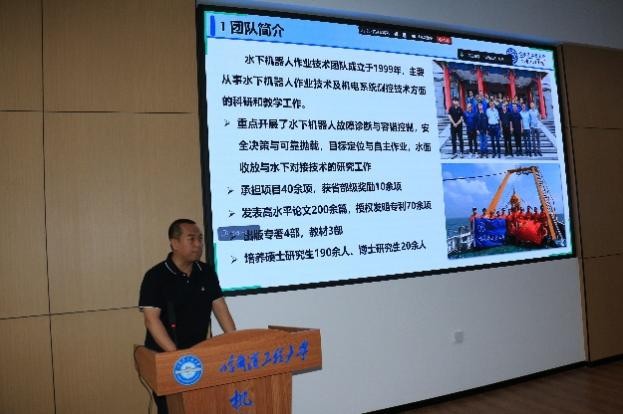 复杂海洋机电系统团队展勇老师、水下作业技术与装备团队张岚老师、水下机器人作业技术团队王玉甲老师、海洋工程结构装备动力分析与设计团队黄嘉奇老师、船海智能制造团队的宋得宁老师、舰船特种装备动态特征研究团队董立强老师分别进行了团队介绍与交流。他们突出介绍了各自团队的主要研究方向、团队队伍构成和科学研究成果,并提出了人才的需求,欢迎海内外青年才俊加入3377体育及团队,共同开展前沿研究,攻克关键技术难题。